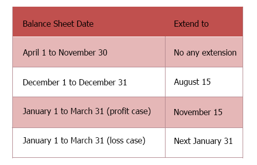 Fiscal year: The fiscal year is usually 12 months. The newly established company can be extended to 18 months in the first year. Since it has been automatically extended for 3 months after Tax Return is received, it can no longer apply for extension; thereafter, the Hong Kong Inland Revenue Department will allow companies to apply for extension of Tax Return according to the different balance sheet date, but there are some restrictions, which has details as follows: